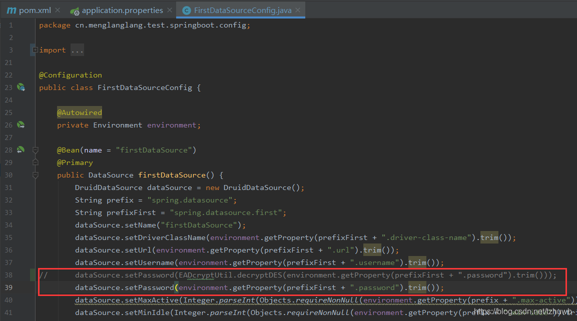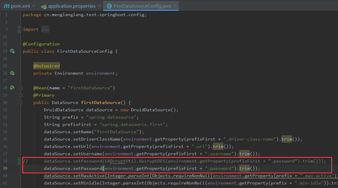 由于上一篇介绍自定义加密时,数据源部分使用了工具类方法来解密密码。但现在这种加密方式,不再需要对密文密码进行解密,SpringBoot 框架会自行解密密码并连接数据库。