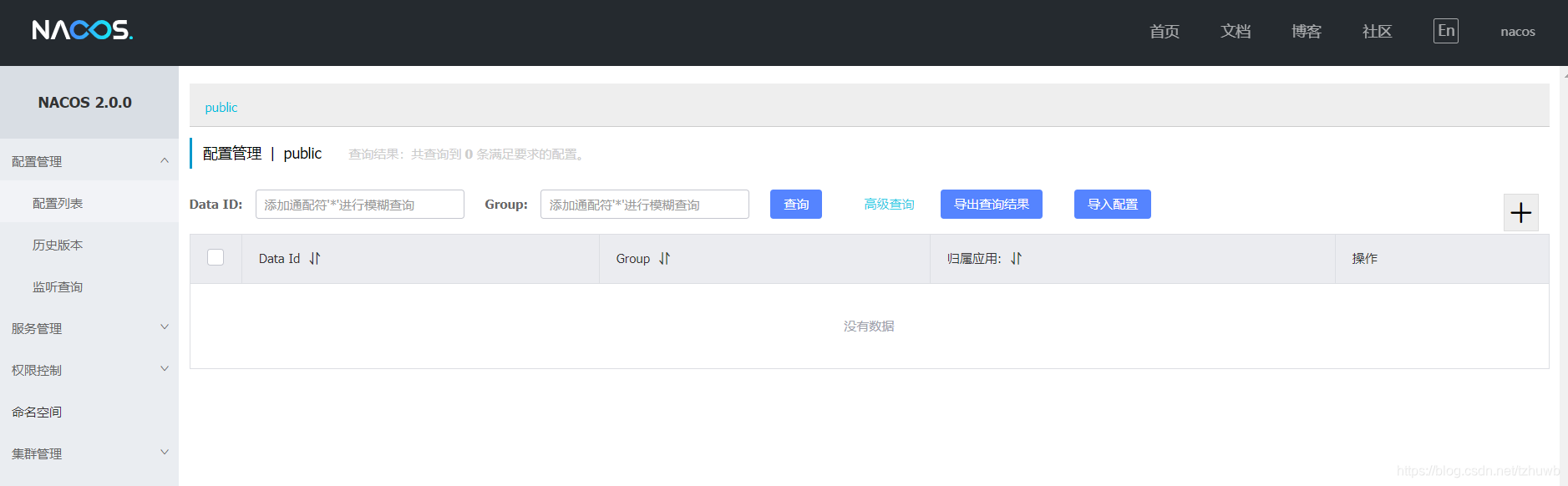 默认用户名和密码都为 nacos,输入后登录,则可以进入后台管理界面,如下图。