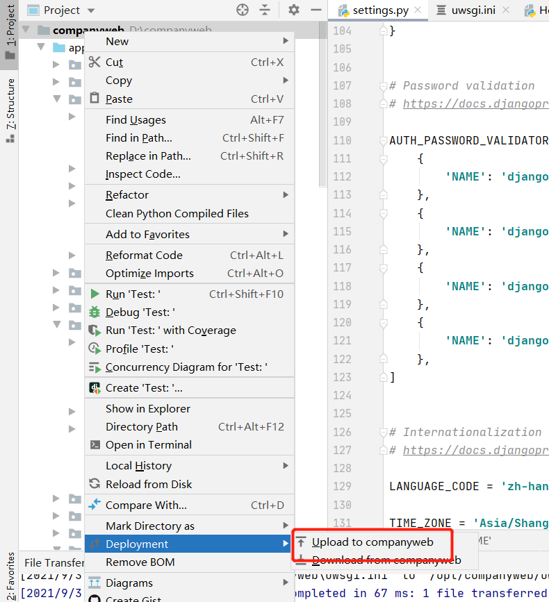 这里我推荐pycharm 专业版本的tools 上传到服务器,如果本地改代码,可以直接通过按钮直接同步更新
