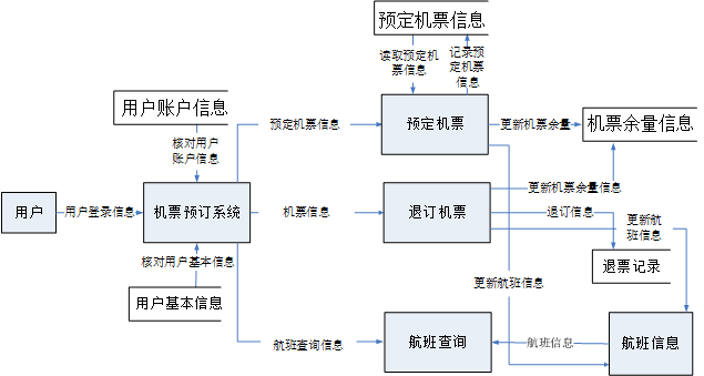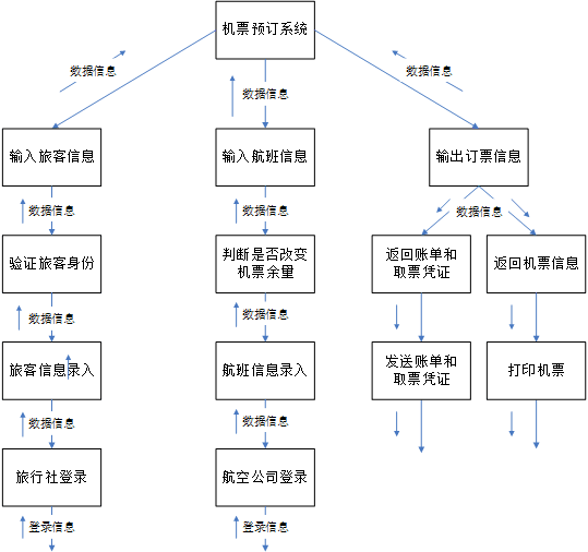 子系统分为机票预订系统、机票退订系统、机票信息系统