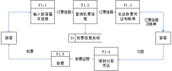 为了方便旅客,某航空公司拟开发一个机票预定系统。具体功能为各个旅行社把预定机票的旅客信息(姓名、性别、工作单位、身份证号码、旅行时间、旅行目的地等)输入到系统中,系统为旅客安排航班。当旅客交付了账款后,系统发送取票通知和账单给旅客,旅客在飞机起飞前一天凭取票通知和账单交款取票,系统核对无误即打印出机票给旅客。此外航空公司为随时掌握各个航班飞机的乘载情况,需要定期进行查询统计,以便适当调整。同时还需完成旅客延误了取票时间的处理,航班取消后的处理,旅客临时更改航班的处理等