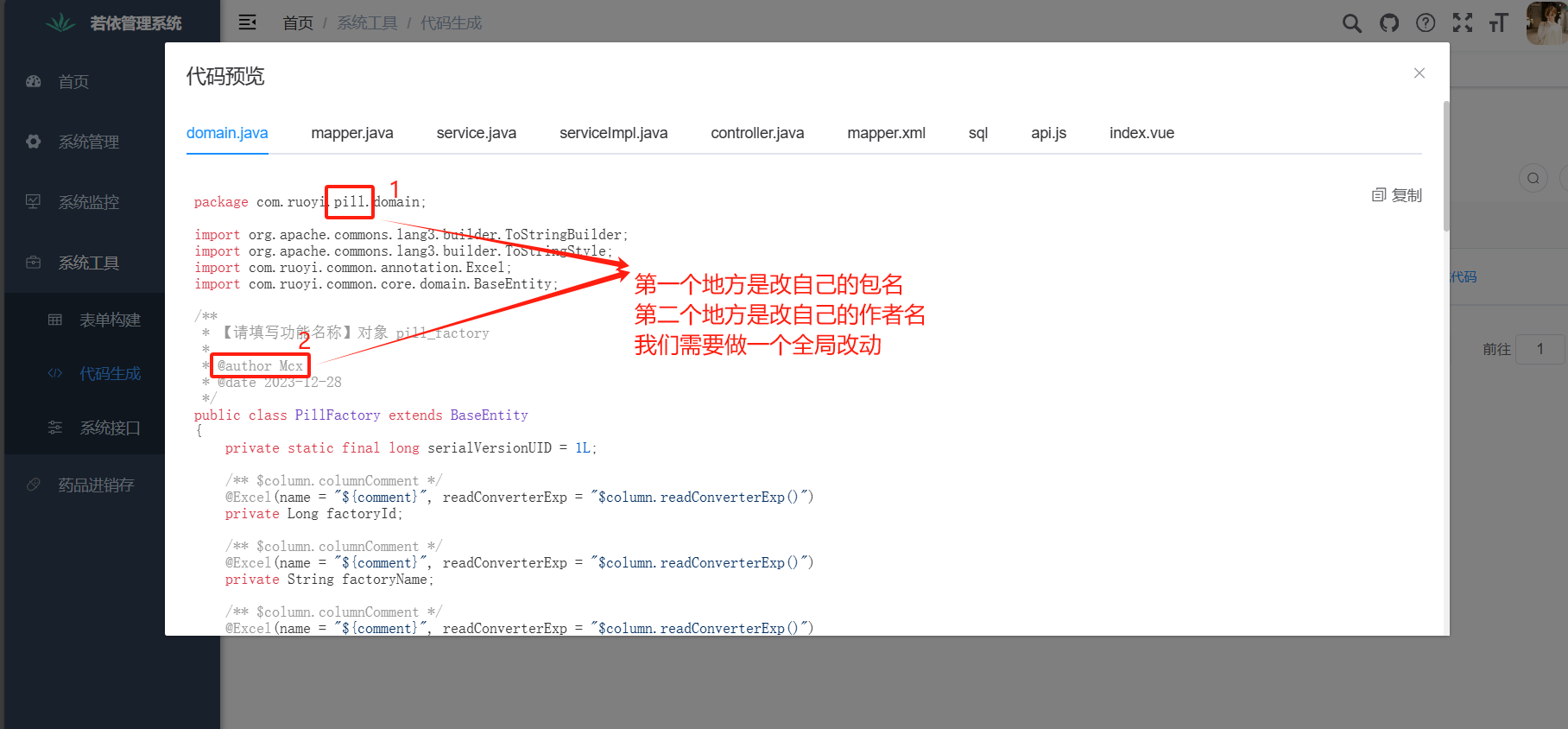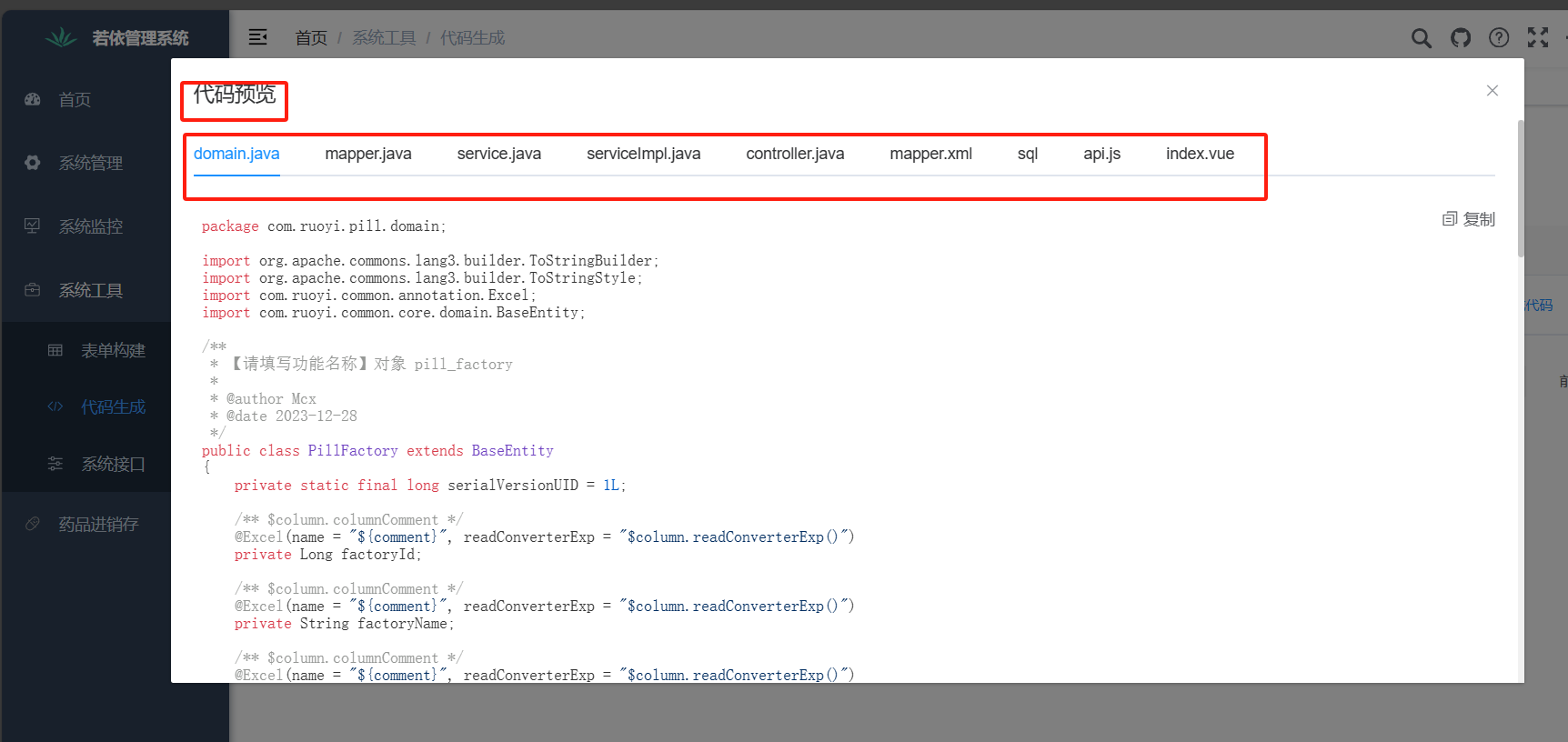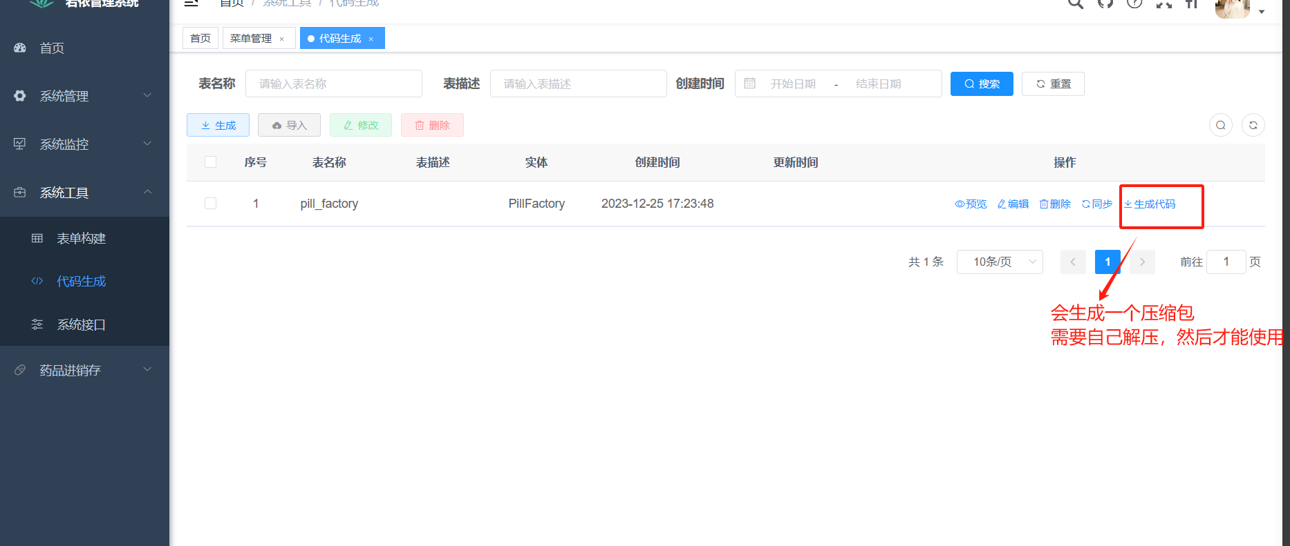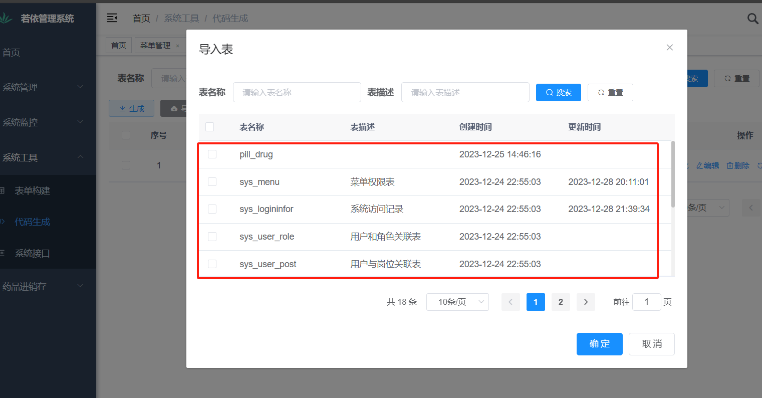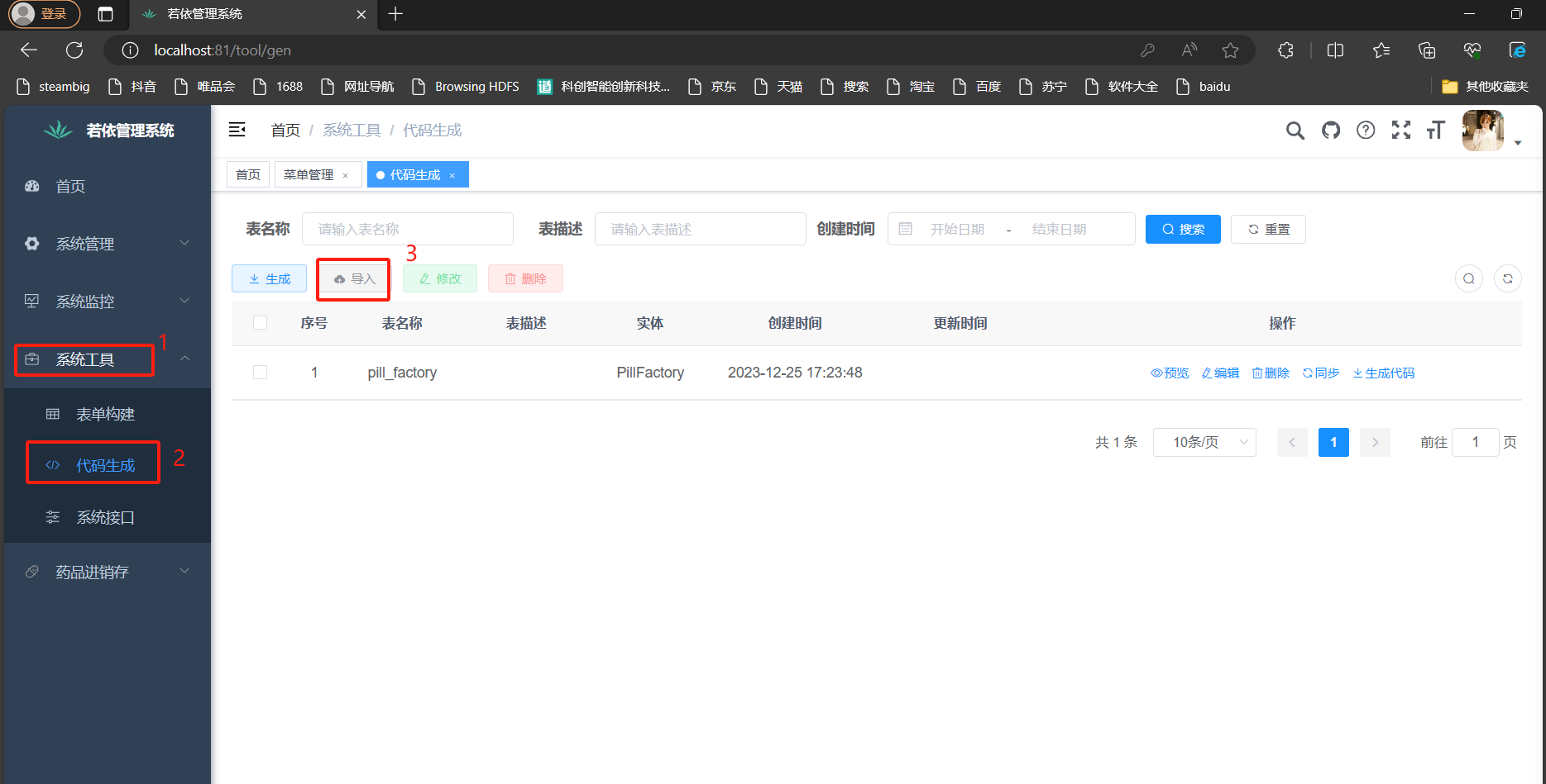 进入若依管理系统后台,系统工具----->代码生成------>导入