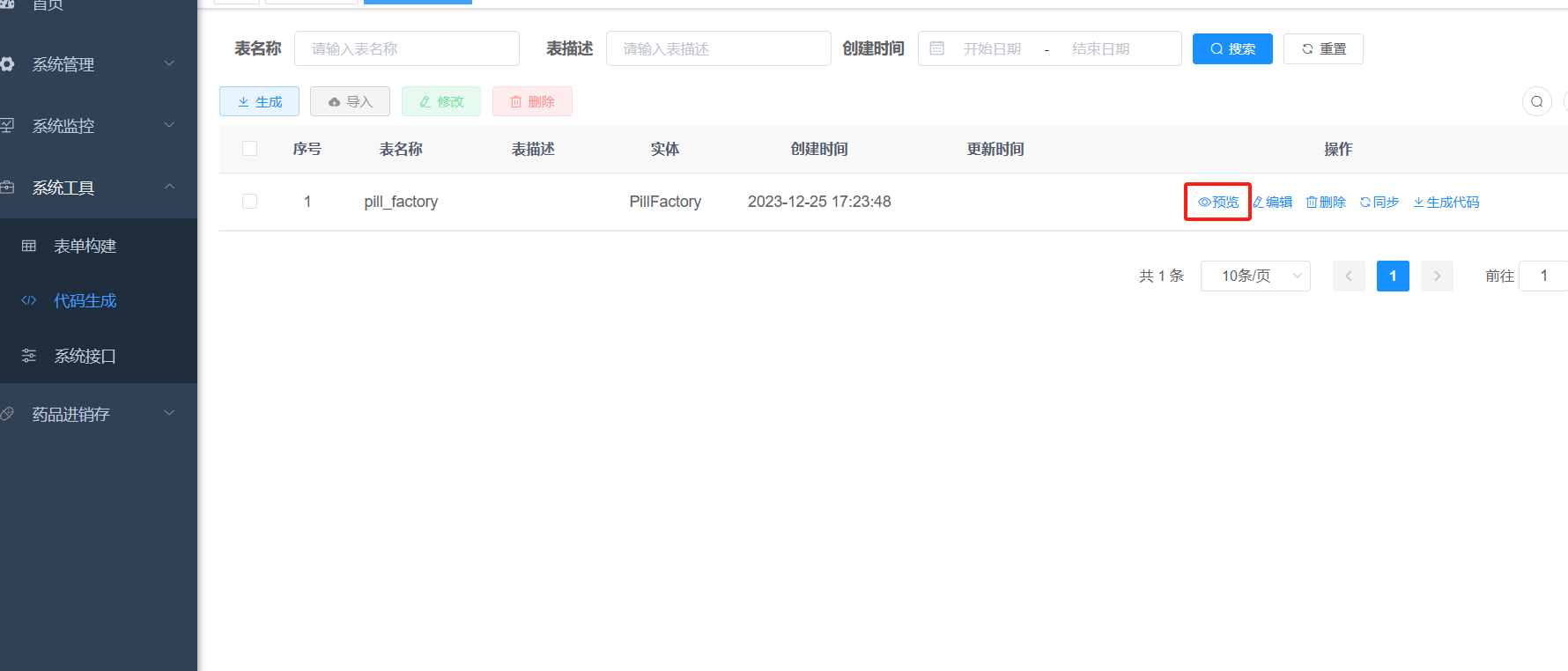 springboot(医保药品进销项--->后端开发---(controller代码----自动生成代码))