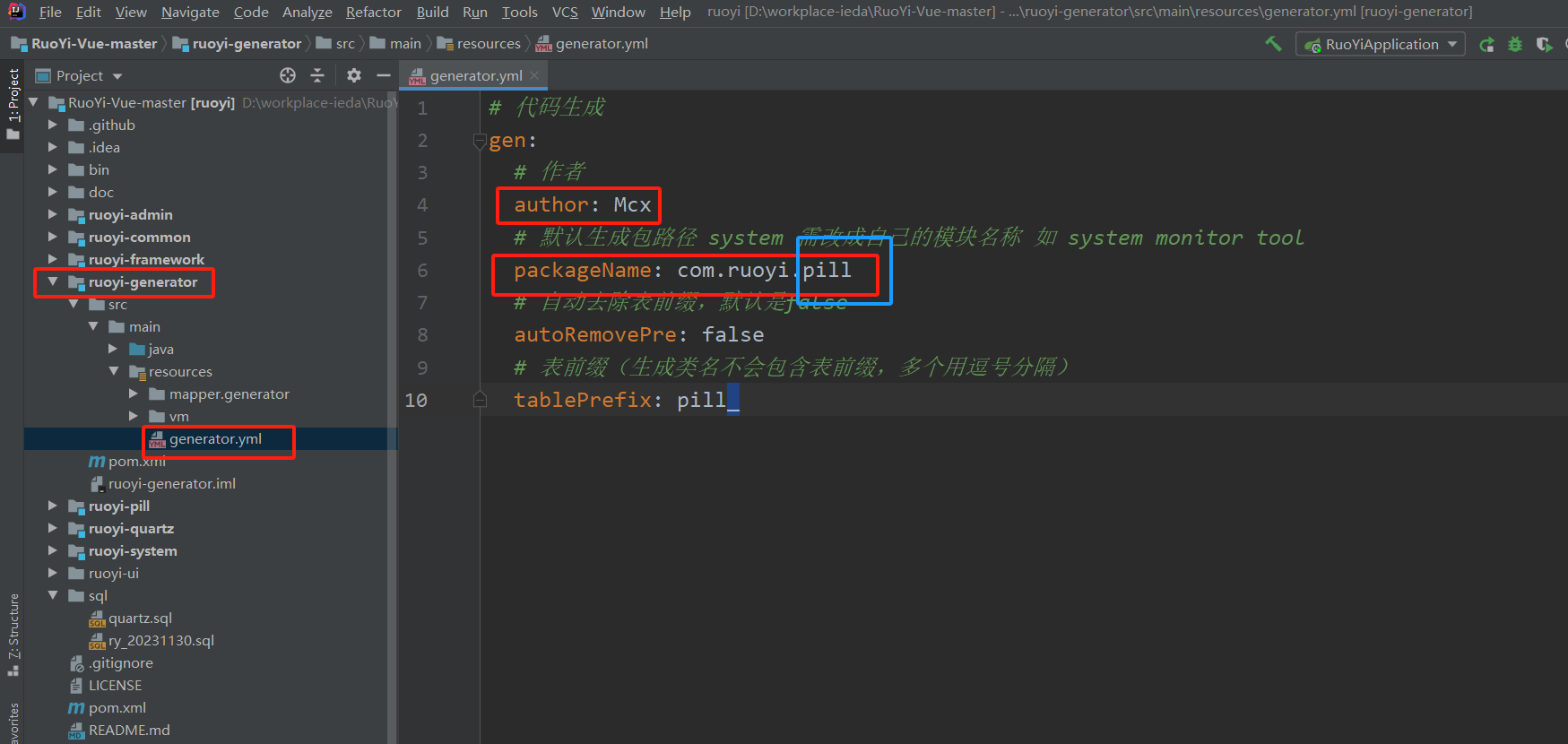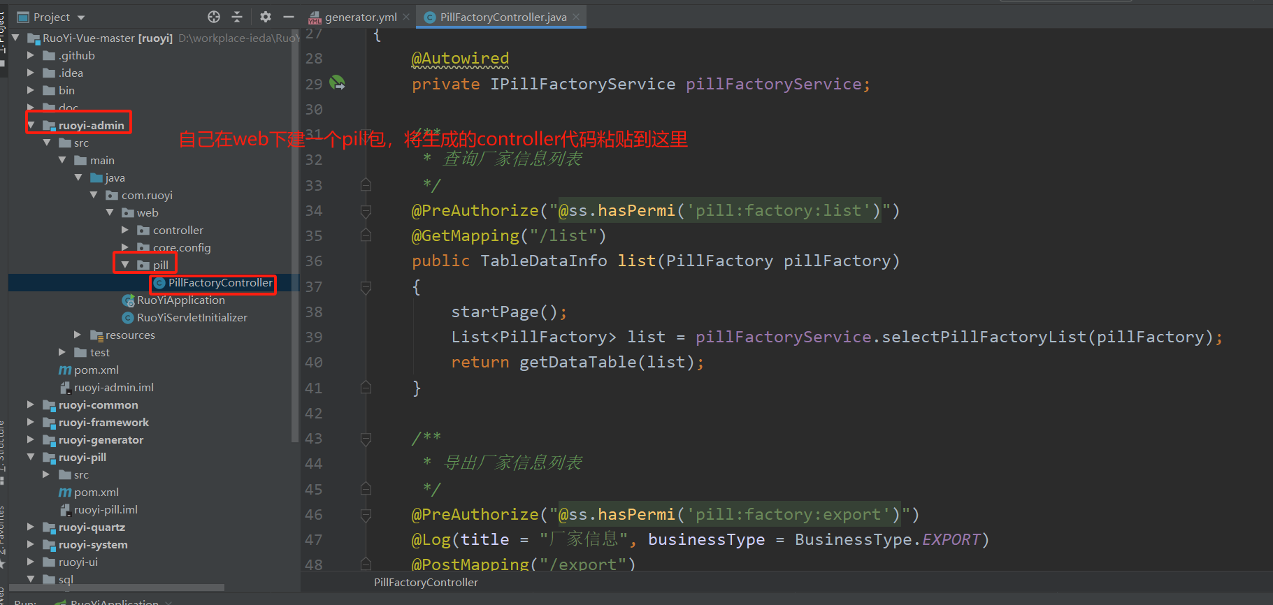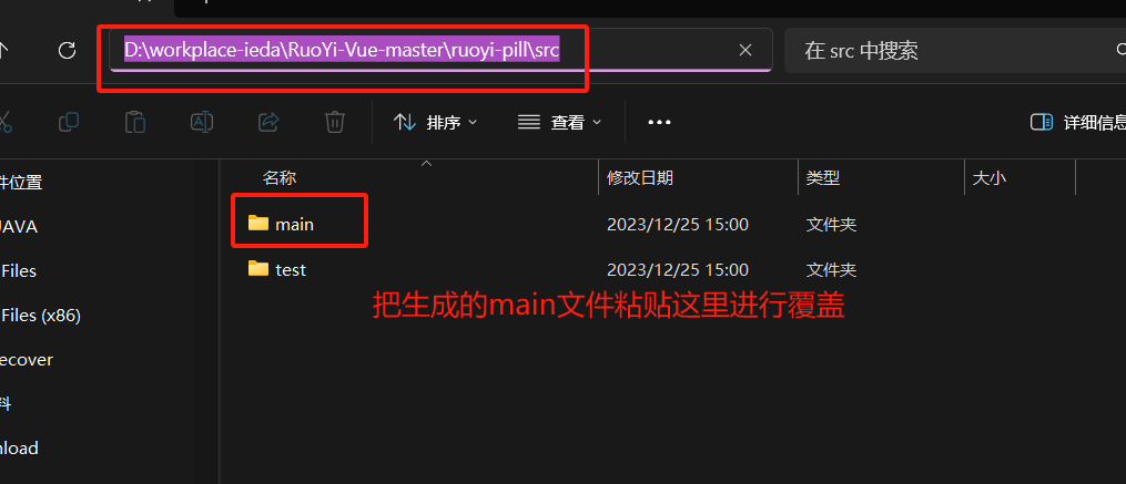 最后将生成的main文件,粘贴到你的 ruoyi-pill\src 下面进行覆盖