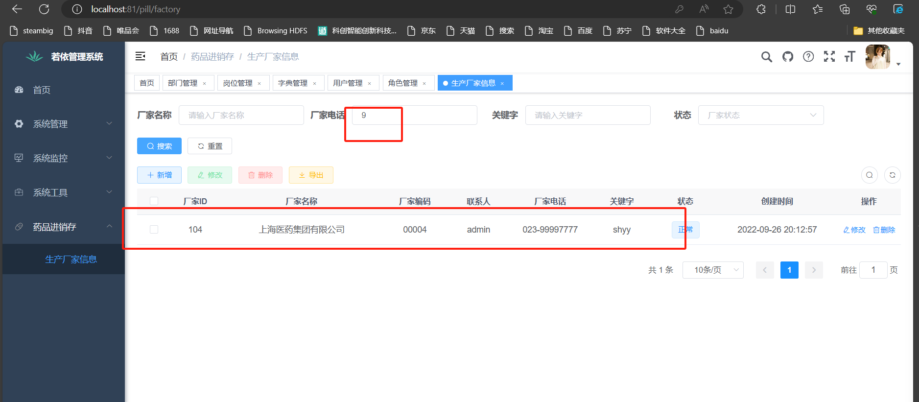 springboot(医保药品进销项管理系统--->增删改查功能测试)