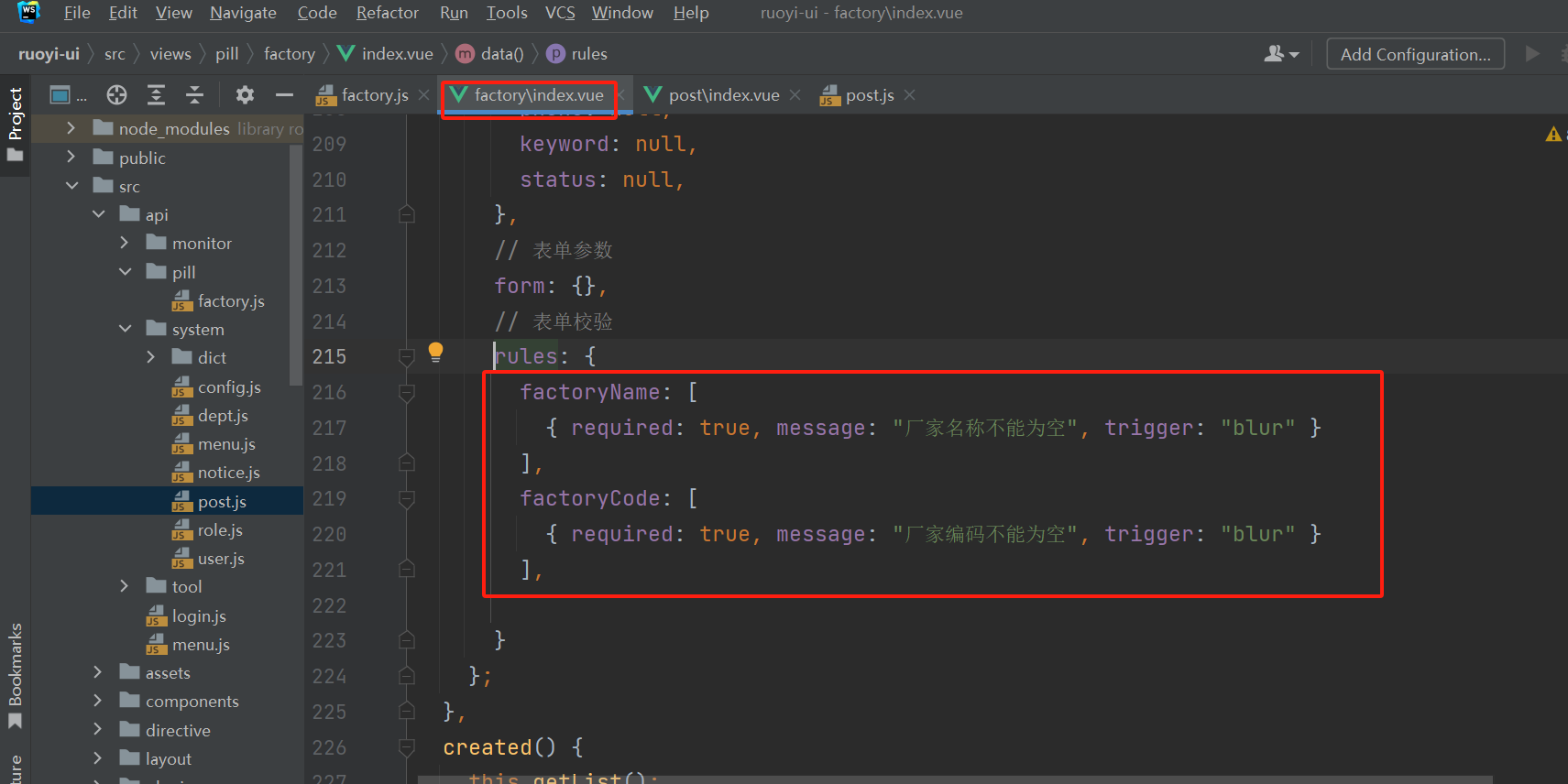 修改如下,这地方修改也是参照着post\index.vue中粘贴修改