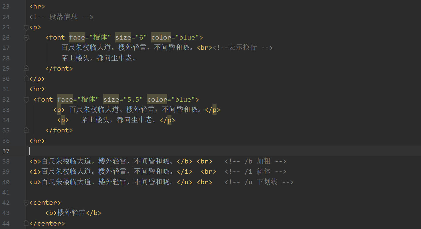 | <font> | 定义文本的字体、字体尺寸、字体颜色 |