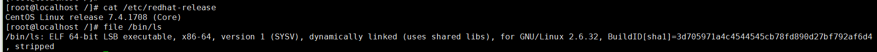 其中:7.4.1708是我的系统的版本,可以通过cat /etc/redhat-release查看系统的版本,通过file /bin/ls查看内核版本。