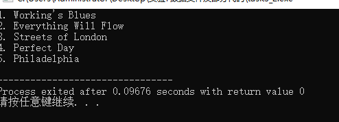 // 使用fgets()从文件中读取字符串并在屏幕上显示 #include <stdio.h> #define N 5 #define M 80 int main() { char songs[N][M]; int i; FILE *fp; fp = fopen("data3.txt", "r"); if(fp == NULL) { printf("fail to open file\n"); return 1; } for(i = 0; i < N; ++i) fgets(songs[i], 80, fp); for(i = 0; i < N; ++i) printf("%d. %s", i+1, songs[i]); fclose(fp); return 0; }