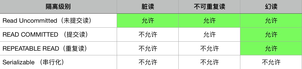 隔离级别按照下面表格的顺序,依次递增,并行能力依次递减,竞争性也就逐渐增强,随之而来的就是性能和扩展性的下降。