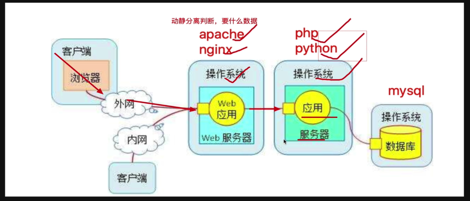 A:apache,动静分离,静态数据找到后直接返回,动态数据转发到应用服务器/数据库,进一步处理后再返回