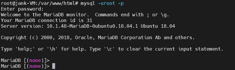 apt install mariadb-server,查看端口,默认端口3306,确认状态service mariadb status- 连接数据库,初始没有密码,两次回车,
