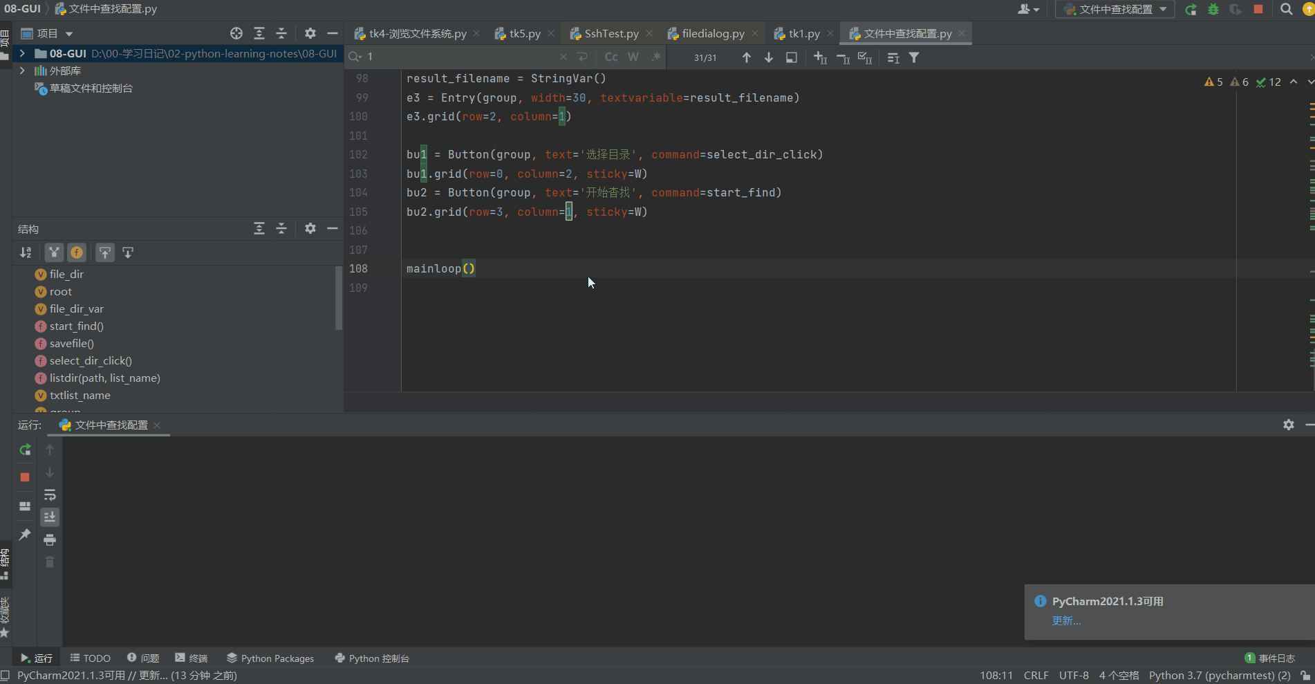 print('待查找的文件路径是:%s' % file_dir_var.get()) # 输出待查找的文件夹路径