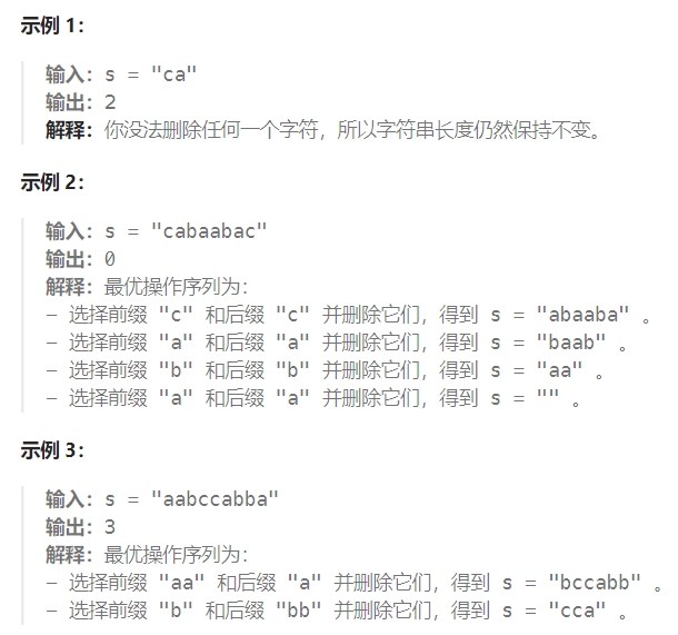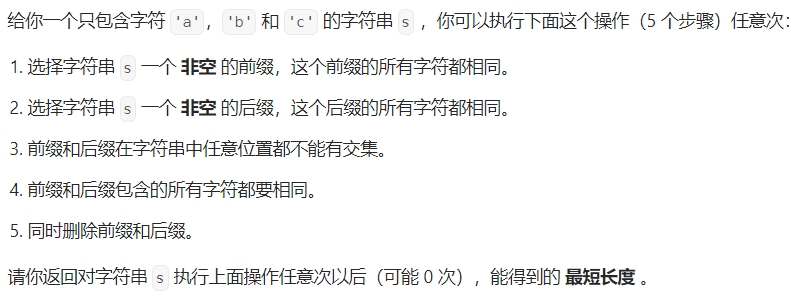 leetcode 1750. 删除字符串两端相同字符后的最短长度