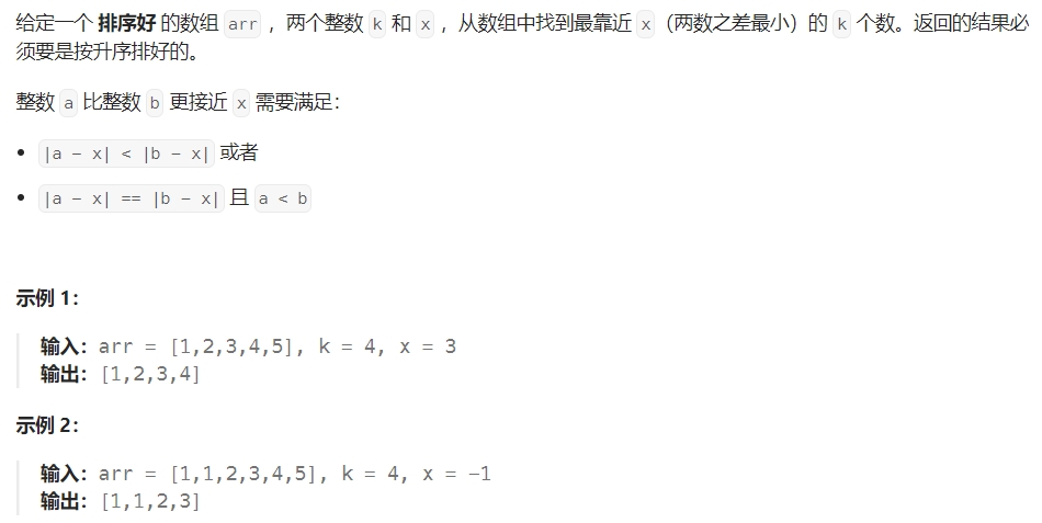 //如果 x−arr[left]≤arr[right]−x,那么将 left 减一,否则将 right 加一