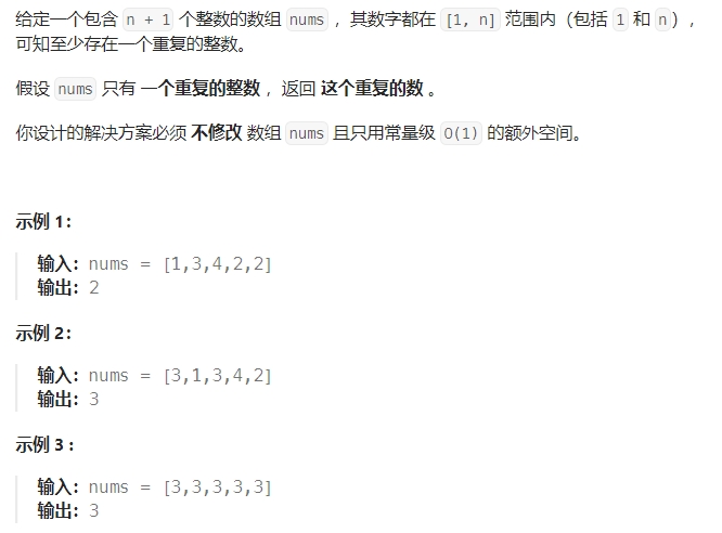 //否则可确定区间 (⌊n/2⌋,n]内存在重复数。即可通过二分查找求解。