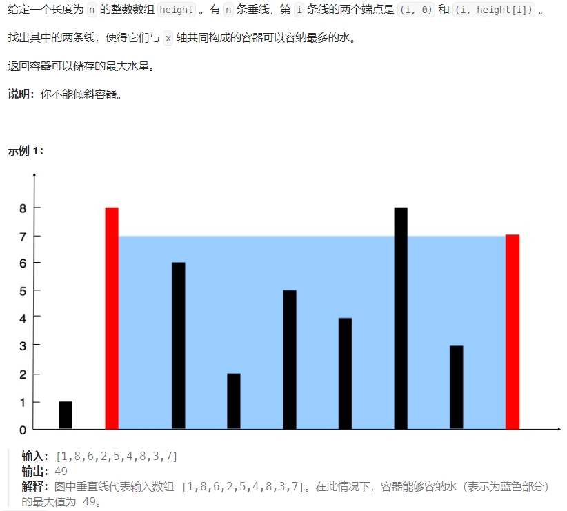 // (right - left) 是底边长度,min(height[left], height[right]) 是高度(取决于较短的那条边)