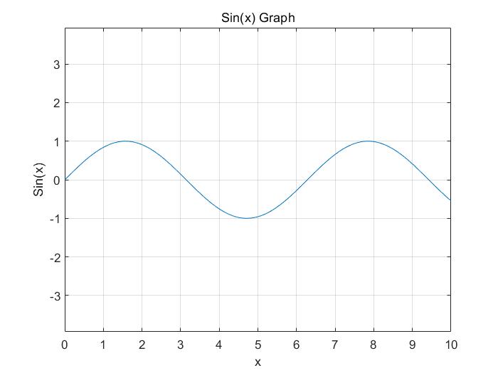 plot(x, y), xlabel('x'), ylabel('Sin(x)'), title('Sin(x) Graph'),