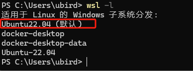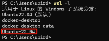 wsl --set-default Ubuntu-22.04 # 或wsl -s Ubuntu-22.04