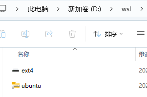 导入盘的路径可以理解为安装的位置。可以看到文件夹下多一个ext4.vhdx文件夹: