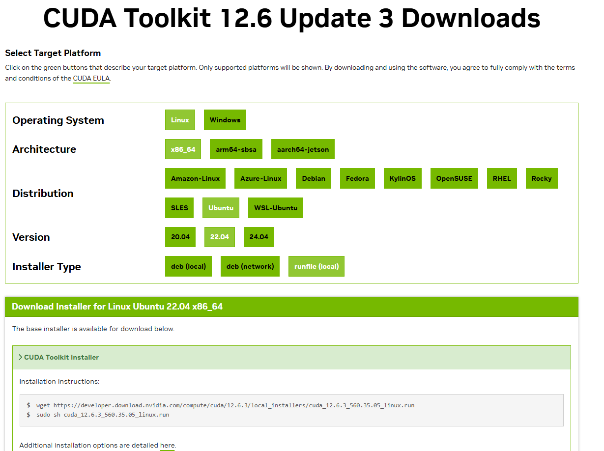 chmod +x cuda_12.6.3_560.35.05_linux.run ./cuda_12.6.3_560.35.05_linux.run
