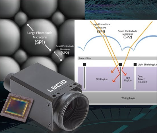 通过在每一个像素成像单元前增加四种不同的极化偏振片,从而对于反射光进行极化采集处理,通过相邻四个像素之间的不同极化RAW图合成为最终图像,完成反射抑制,目前索尼的产品 Sony@IMX250,IMX264,IMX253.