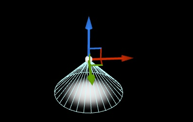 前面所述的点光源,其光强虽然会随着距离而衰减,但是各个方向上是等同的,而此处的聚光灯,更进一步考虑了光强在不同方向上的函数分布。即: