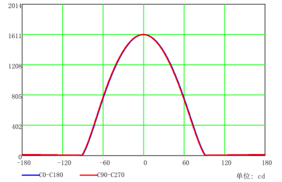 - 50% 峰值光强: \(1/2 I_{max}=805.5cd\),这里主要是为了看光束角.