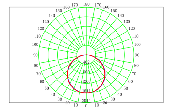 - 峰值光强: 从图中可以看出大概 \(I_{max}=1611cd\) ,峰值光强的大小决定照明的强度和照度。(当然影响照度和强度的因素还反光杯的角度和照射距离有关).