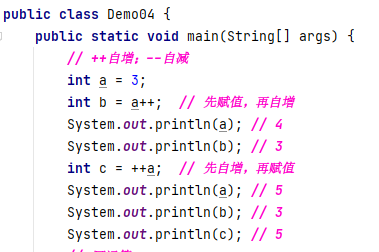 - 算术运算符:+,-,*,/,%(模运算,取余),++(自增),--(自减)