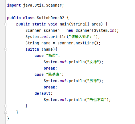 - 多选择结构还可以用 switch case语句:匹配一个具体的值
