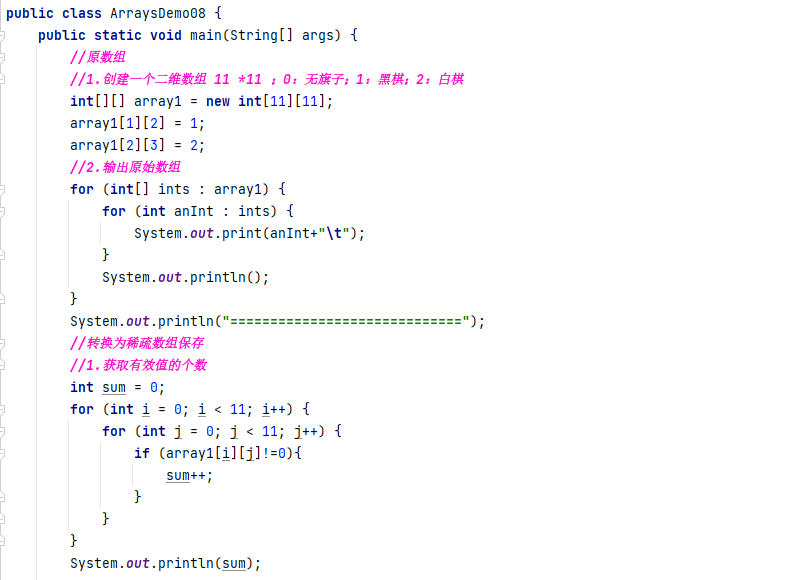 - 当一个数组中大部分元素为0,或者为同一值时,可以用稀疏数组来保存该数组