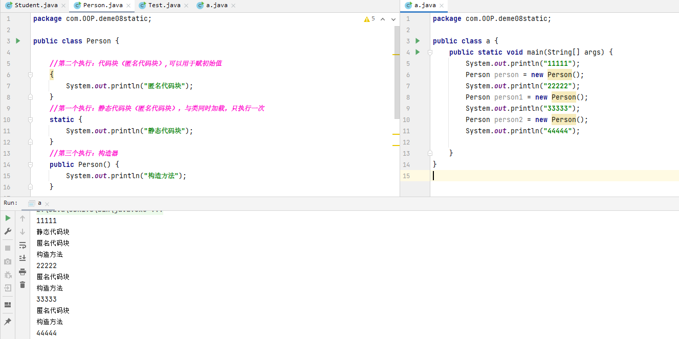 - new对象进行调用:Student s1 = new Student();s1.go()