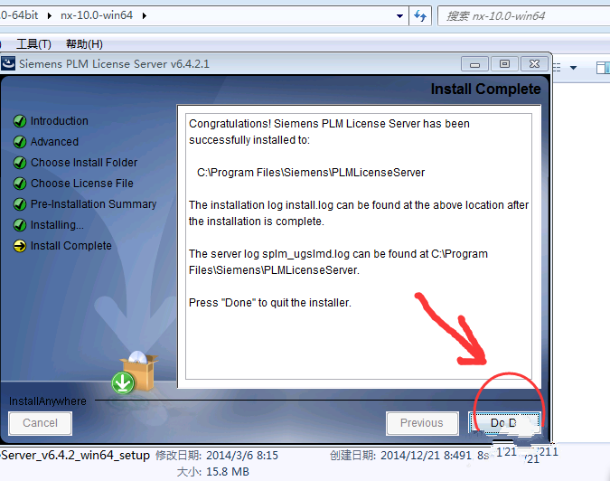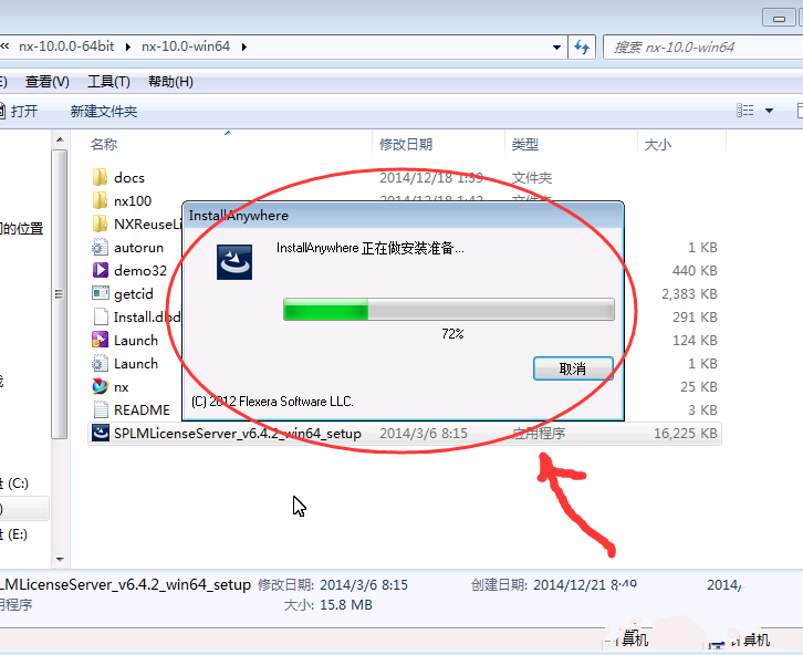 2、打开下载的UG软件包,按下图指示点许可证的安装图标;双击后,其会弹出下图的运算过程;
