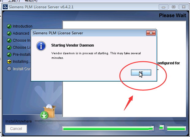 6、当进入到许可证的安装程序以后,如弹出如图1的提示,点OK,其安装完成后,界面如图2,下一节讲解UG主程序安装。