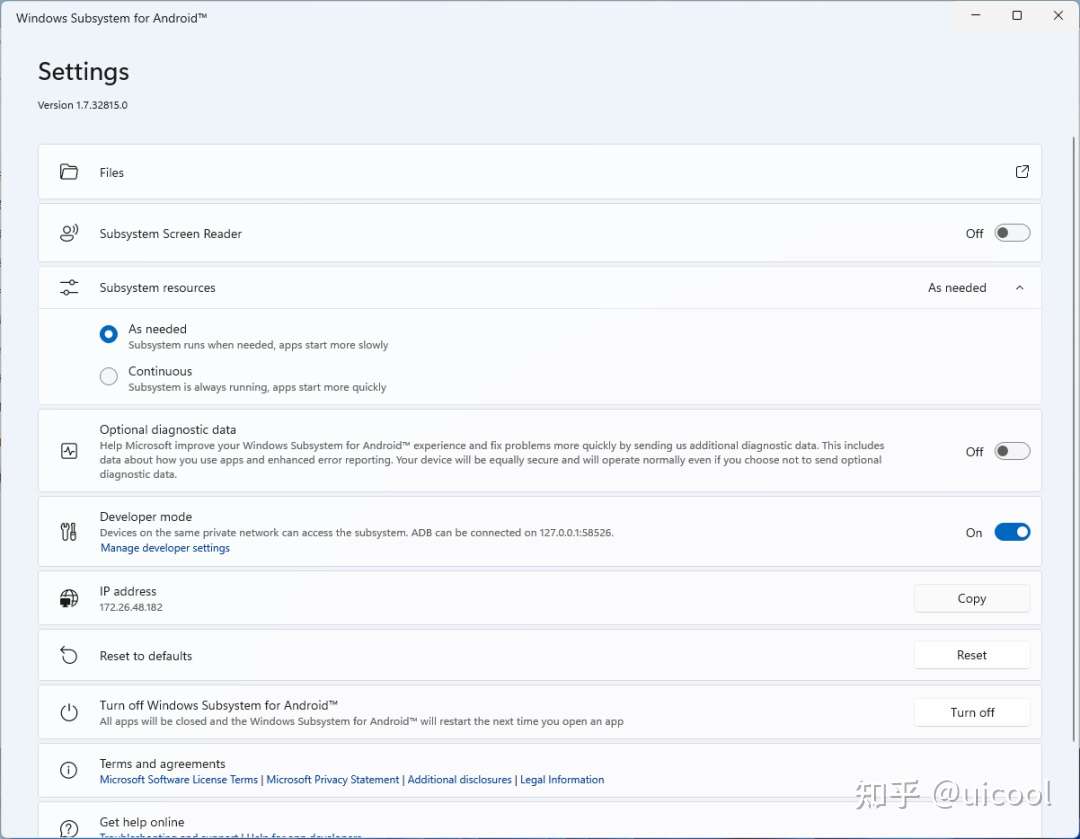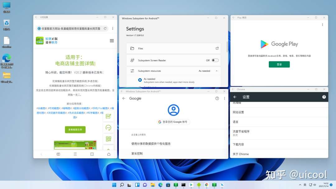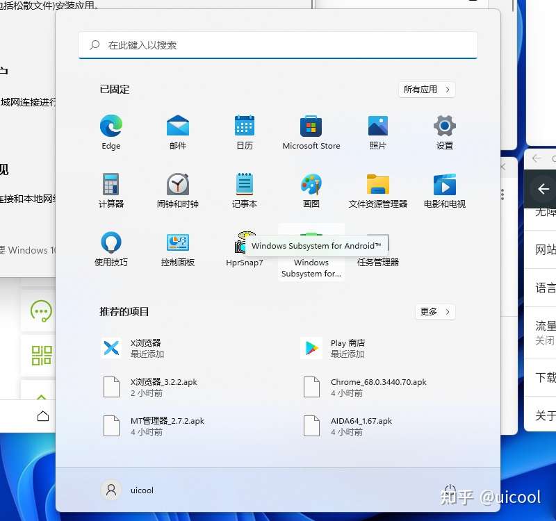 (说明下:本版本的安卓子系统基于英语版的安装包进行修改制作,因此子系统设置界面是英文版的,但安卓其他部分还是中文显示不影响使用体验。)
