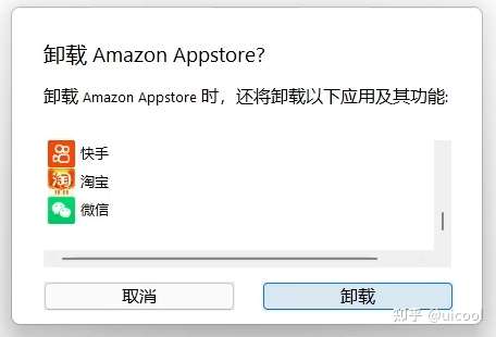 卸载方法为:Windows 11的开始菜单→所有应用→找到亚马逊应用商店右键点卸载,这样操作将会卸载掉已安装的子系统。