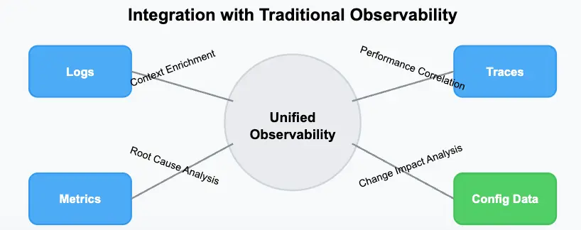 当配置数据作为第四支柱时,其真正的力量在于与传统可观测性数据集成后展现出来: