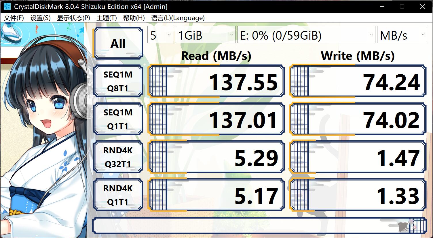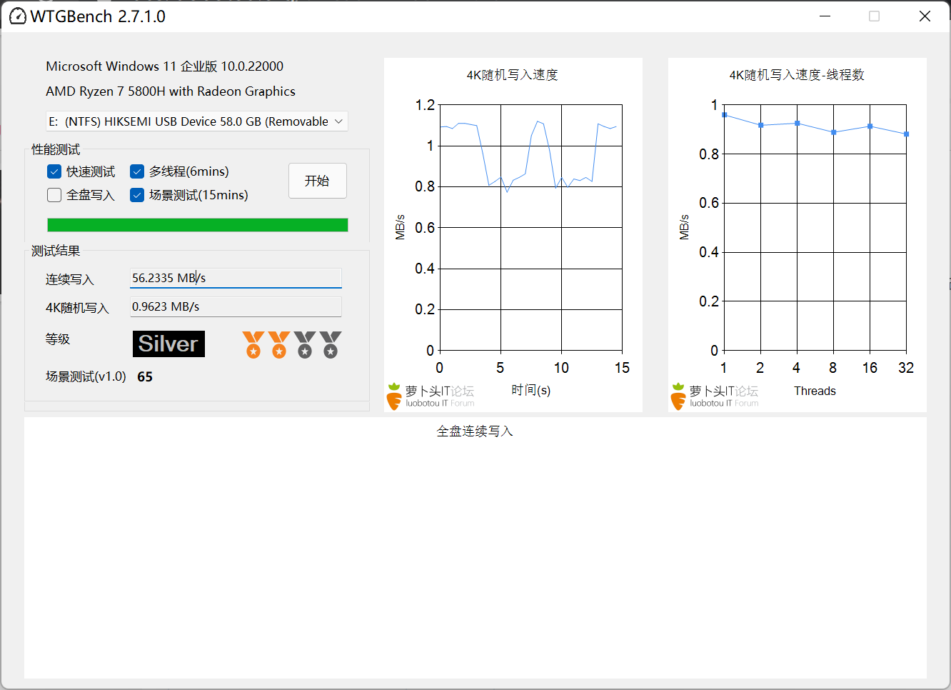 写入在40-57之间波动,读取130左右