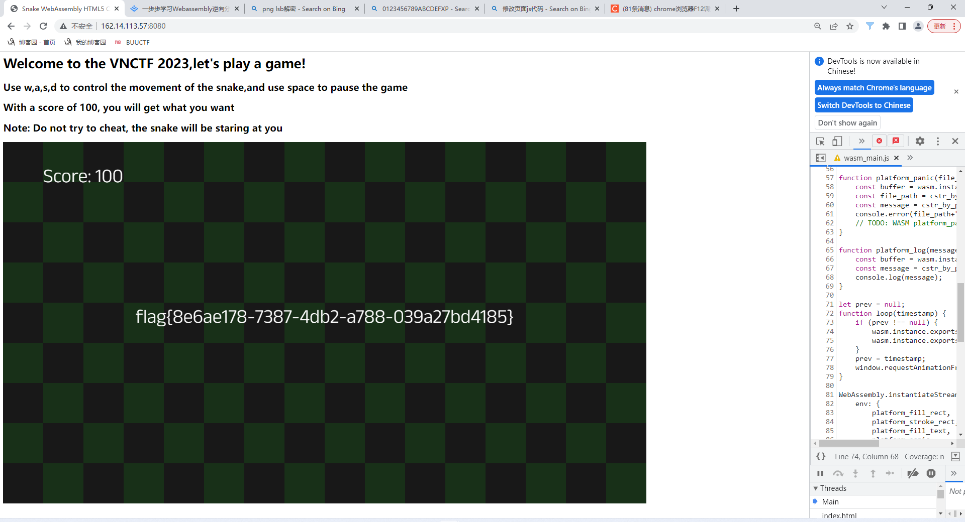 我用wasm2c,得到C文件,再gcc -c game.c -o game.o,把game.o拖进IDA,还是不会。最后还是用其他解法。