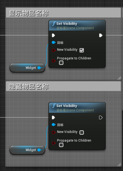 因为我们要做到显示名字和隐藏名字这两个效果,而Widget本身就和显示道具名字的控件绑定,所以只需要对Widget进行显示和隐藏操作即可。