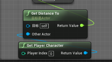 Get Player Character本身就包含了不同玩家的相同类型信息,比如位置、身高、速度等,只是信息内容不一致罢了,所以我们不需要再单独引用人物位置,而是创建一个新的事件Get Distance to(达到距离),这个事件其实是获取两个Actor之间的距离,因为这个事件是写在道具蓝图内的,所以在目标处写Self(自己)即可。