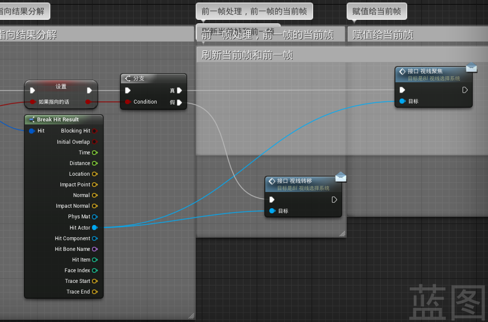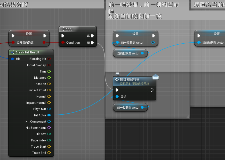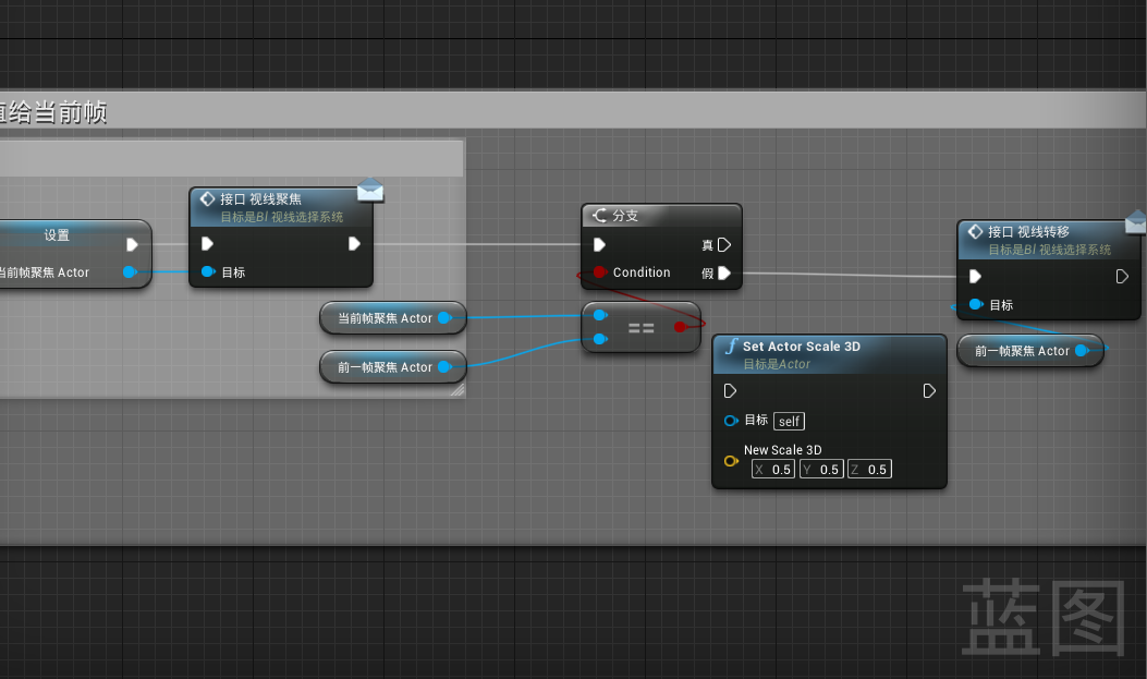 还有别忘了在“假”那块也连上前一帧的视线转移事件,不然指向非Actor时钥匙提示信息还会显示 。