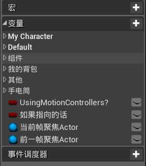 那么除了这个区别外,还存在一个典型区别,就是:钥匙是钥匙、墙是墙、地面是地面,我们聚焦钥匙,就会触发钥匙内的事件,不会去触发地面内的事件对吧?(这就跟身为人要干人事儿一个道理),所以我们要做的是区分我们到底指向的是钥匙还是地面,进一步去思考,指着钥匙和指着地面的区别在哪里?除了东西不一样外还有时间点也不一样,射线只有一条还不会穿透,怎么做到同一时间指着两个东西呢?所以时间就是关键,我们要为线性检测添加Tick事件来让检测过程处于持续状态,同时,如果射线不处于持续状态的话,我们是见不到射线的。之后我们要创建两个变量:前一帧、当前帧,因为这两个变量代表我们指向的Actor对象,所以类型便是Actor对象。