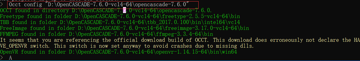 ->Occt config 配置路径,MaCAD3D对Occt的版本要求在7.6.0,我设置为7.3.0,发现由于找不到OpenCV所以失败,当配置成功后会出现如下
