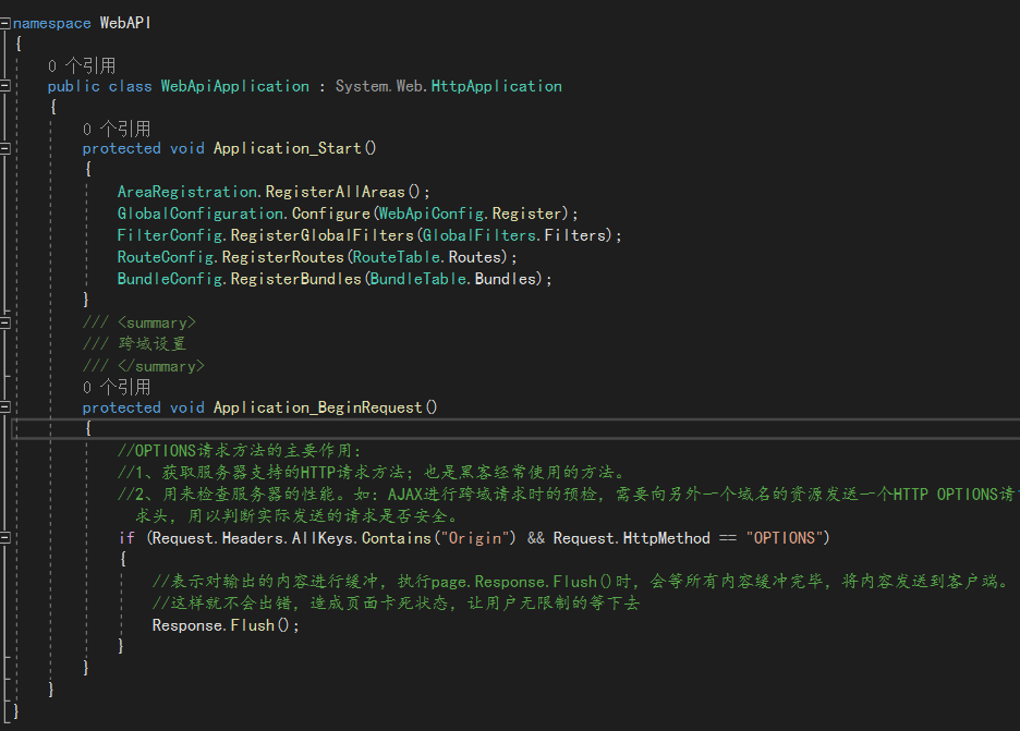 跨域设置:将文件复制到API项目中的Global.asax文件中,在WebApiApplication方法中插入此段代码
