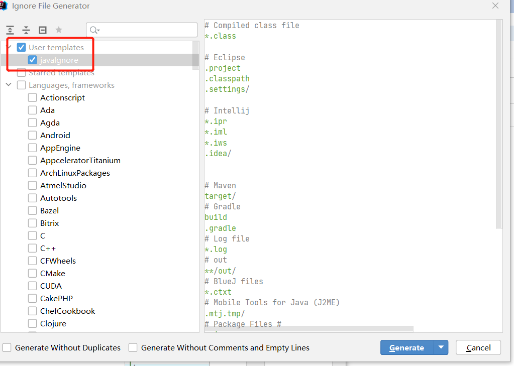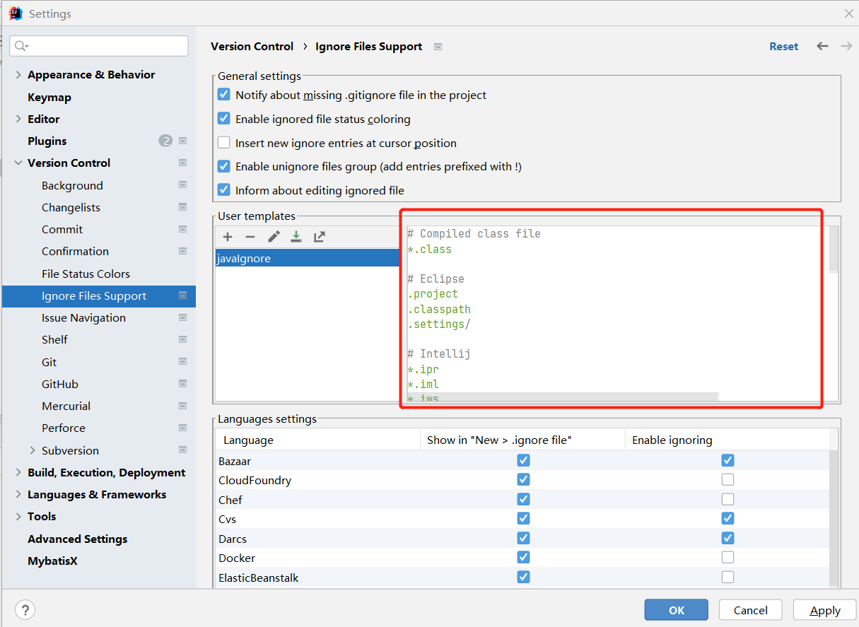 自定义.gitignore忽略文件的模板,如下图