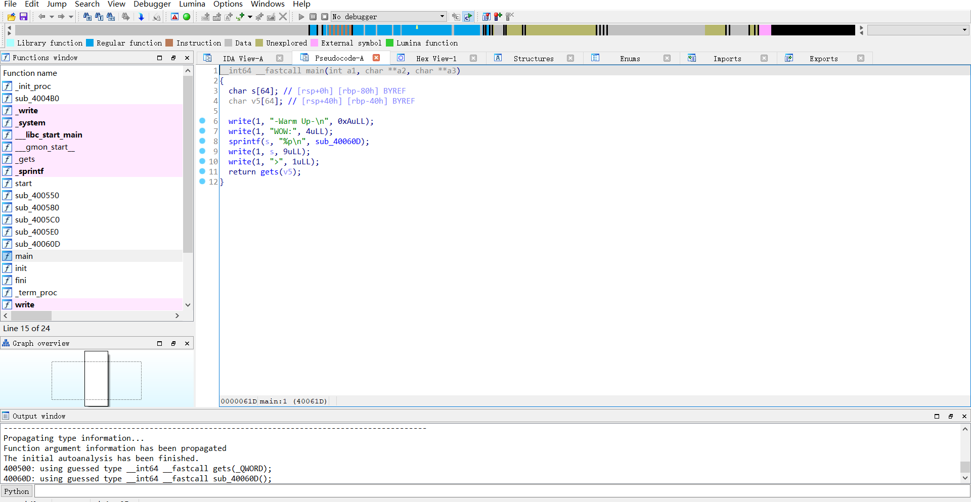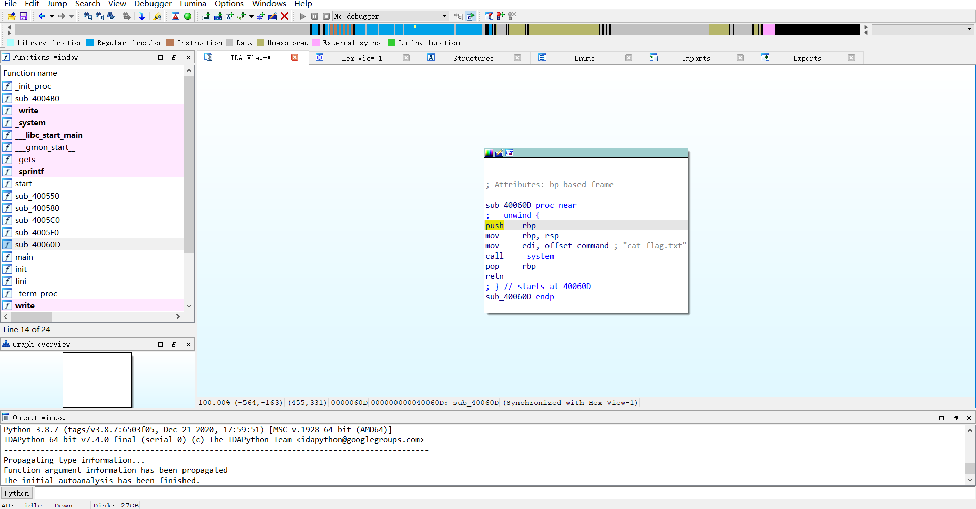 可以看到程序输出了地址0x40060d,使用IDA查看地址