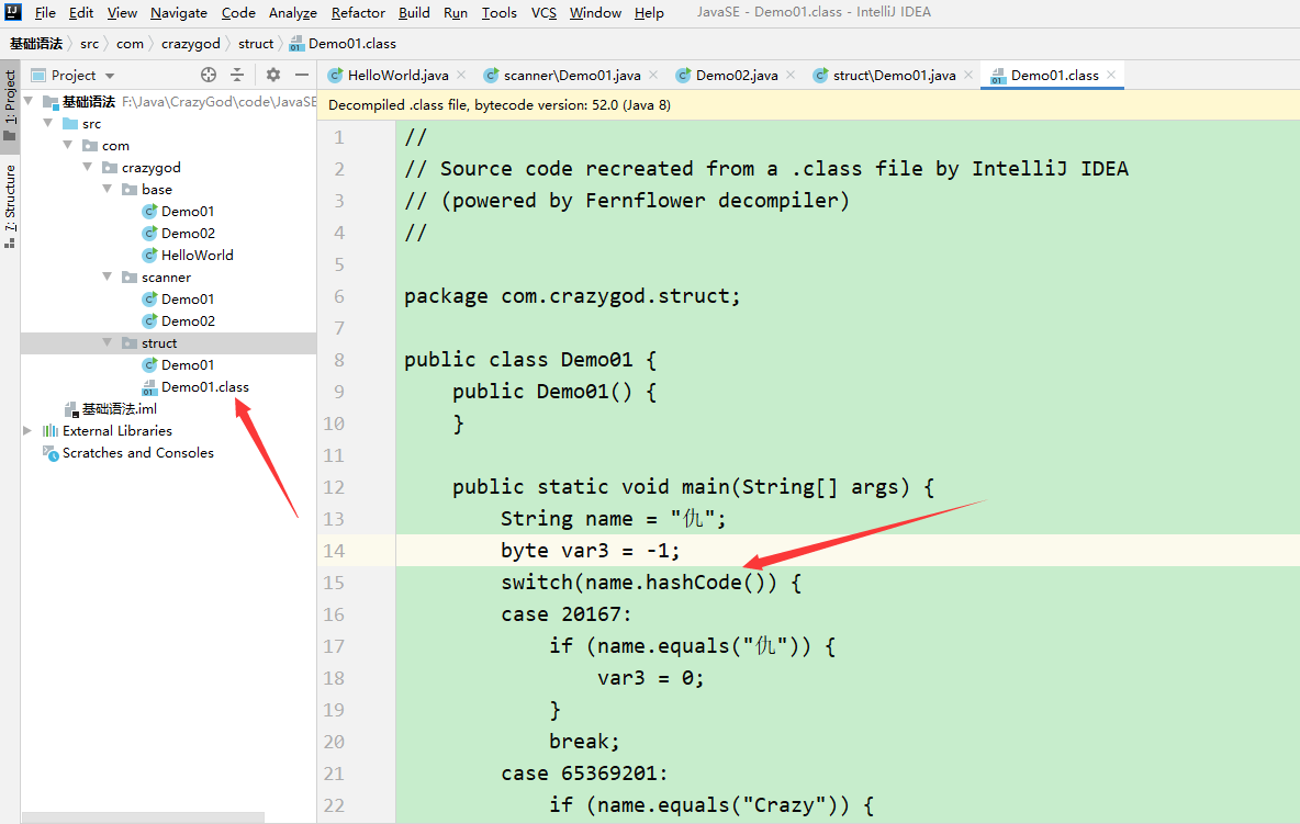 // 反编译 java---class(字节码文件)—---反编译(idea)